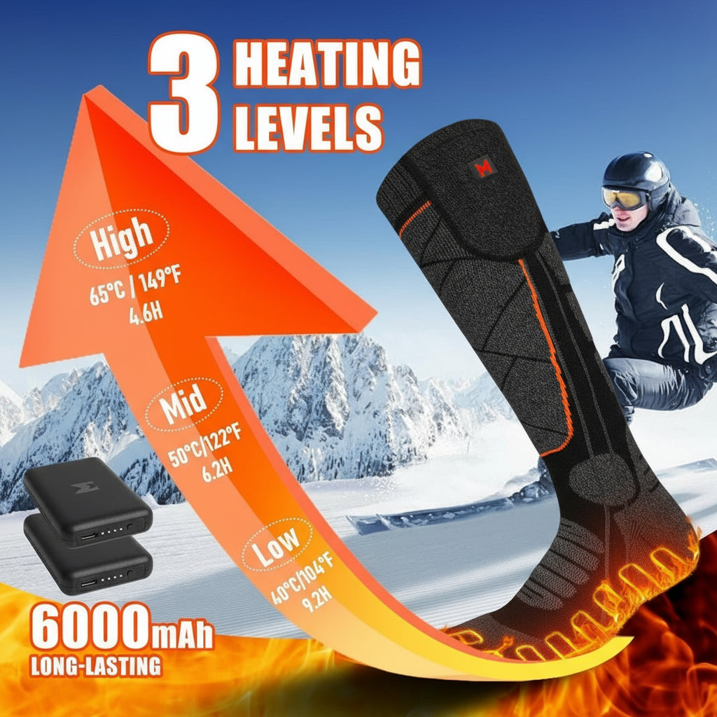 🔋Each pair of heated socks features dual 6000 mAh rechargeable batteries, powering a carbon-fiber heating network that delivers 360° warmth to your feet.